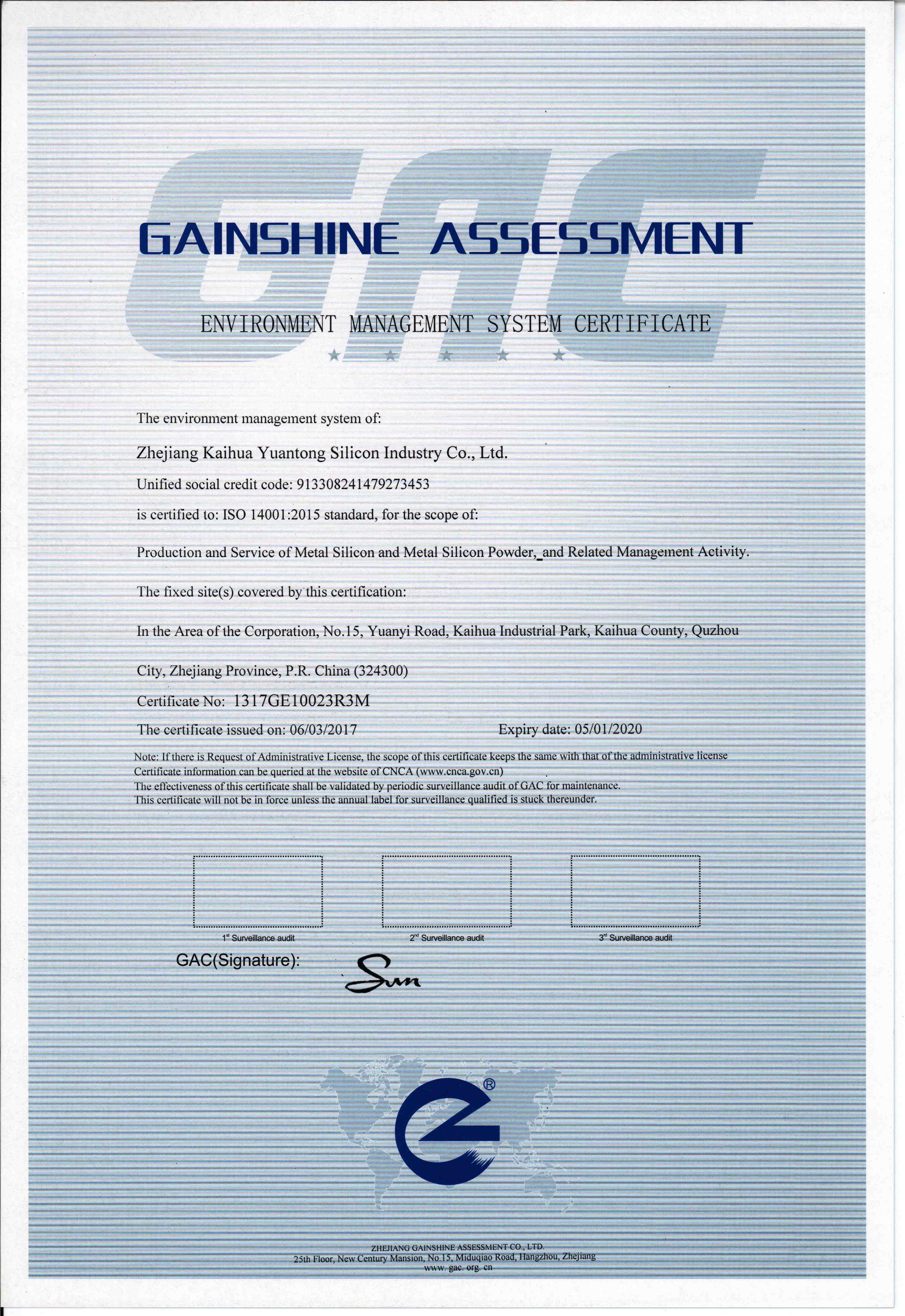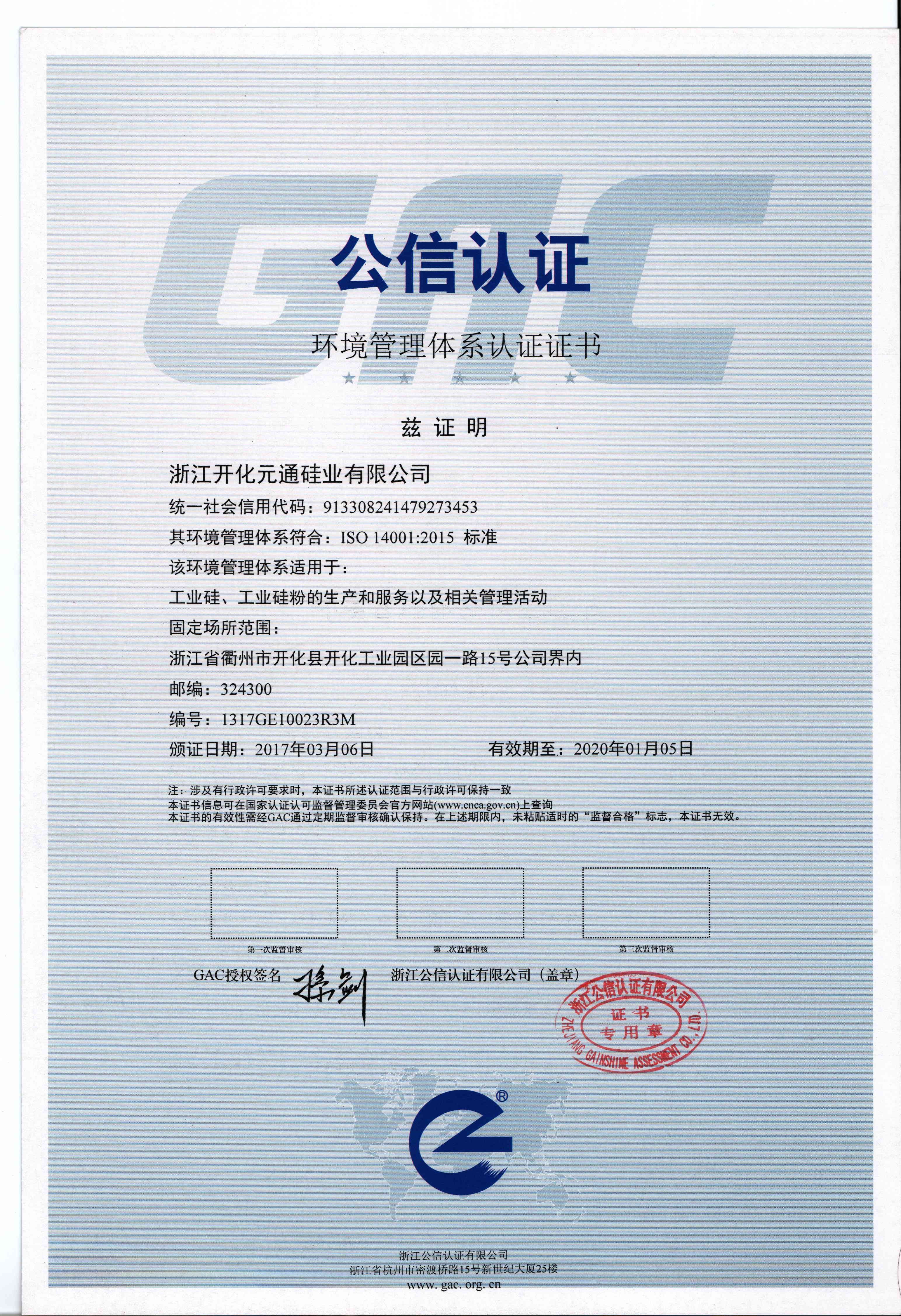 - 環境管理(lǐ)體(tǐ)系證書(shū)(ISO14001)