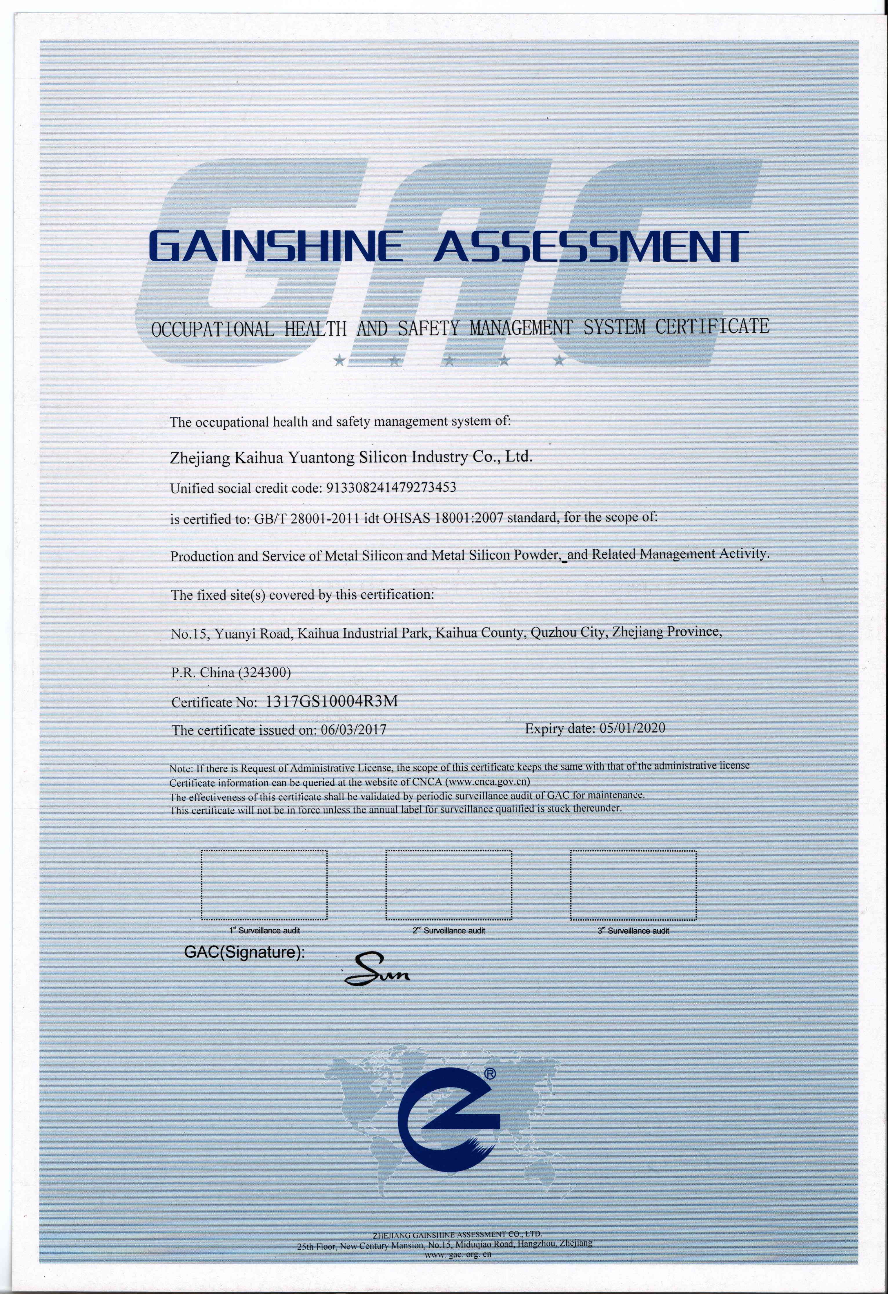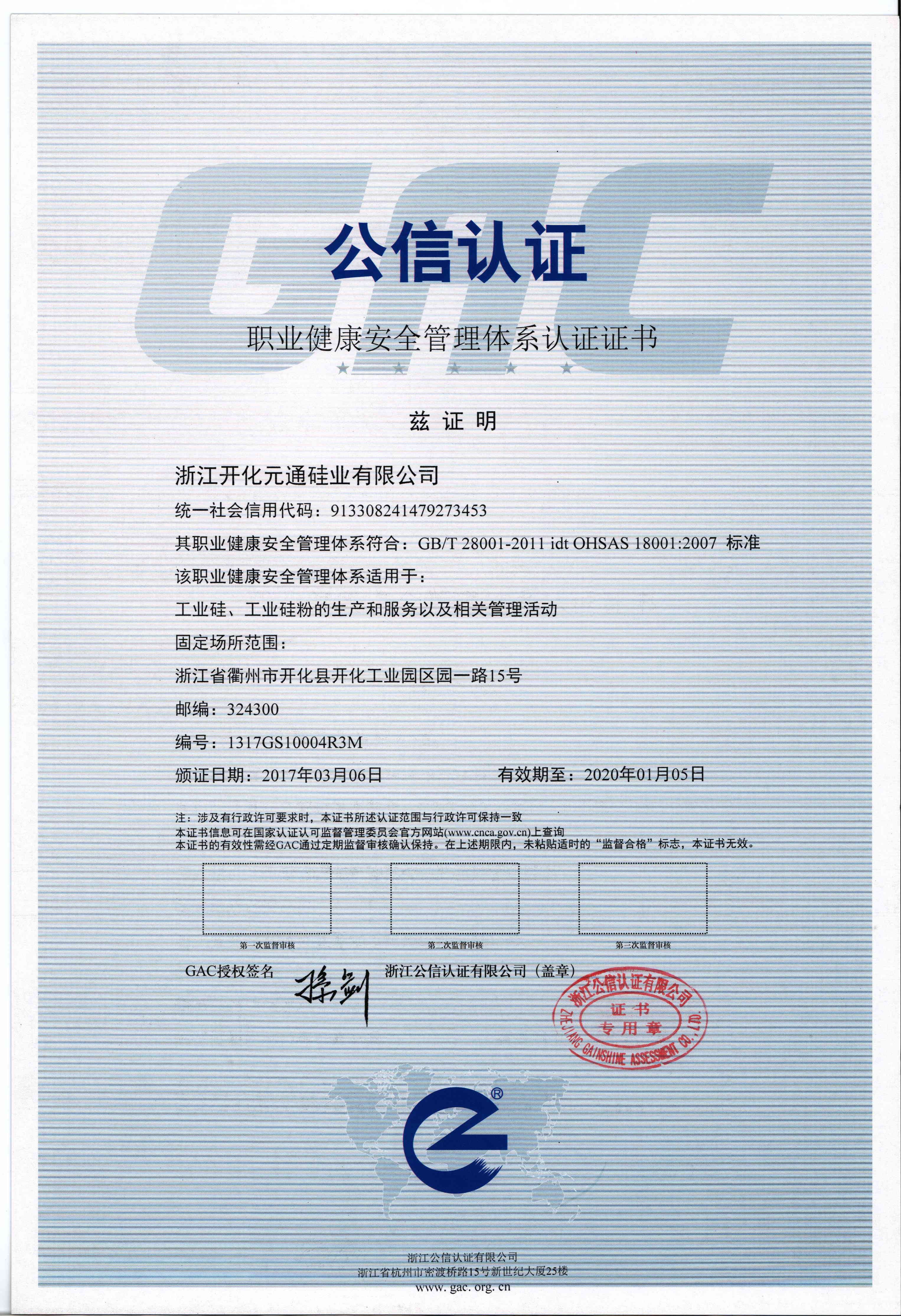 - 職業(yè)健康安全管理(lǐ)體(tǐ)系證書(shū)(18001)